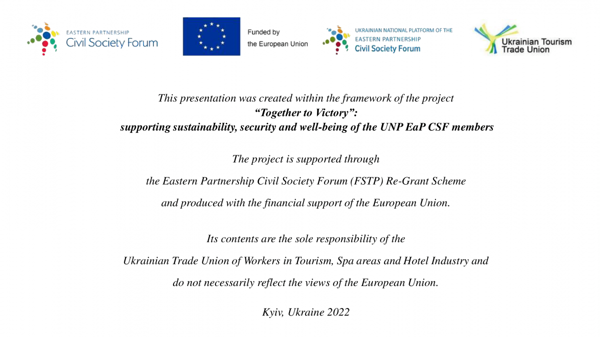 Презентація підготовлена в рамках проєкту «Разом до перемоги»: підтримка сталості, безпеки та добробуту членів УНП ФГС СхП, що реалізується в рамках регрантингу Форуму громадянського суспільства Східного партнерства ( Eastern Partnership Civil Society Forum) за фінансової підтримки Європейського Союзу.